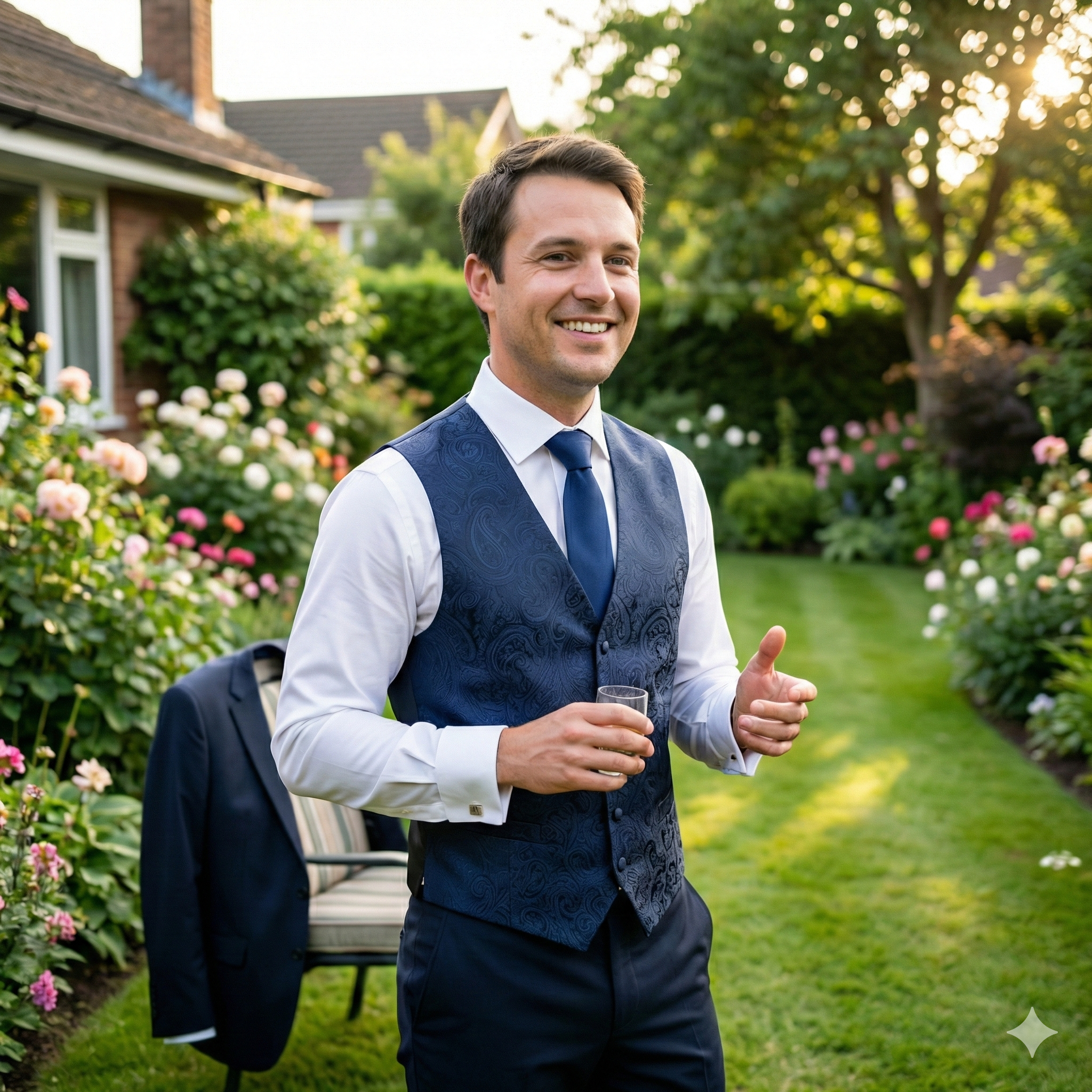 "Gilet sartoriale di altissima qualità. Vestibilità perfetta e tessuto elegante. Ha trasformato completamente il mio abito da sposo."